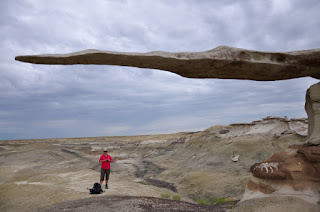 Als we er zijn maken we natuurlijk honderden foto's. De lucht is bewolkt dus krijgen we wel mooie foto's? daar kunnen we helaas niets aan doen, het weer is het weer. We zijn al blij dat het niet gaat regenen. We blijven ruim een uur rondom dit bijzondere geologische verschijnsel wandelen, fotograferen etc, en genieten volop en dan is het tijd om de terugreis te aanvaarden, de lucht wordt donker en we willen niet met regen geconfronteerd worden voordat we op de highway zijn. Met de goede coördinaten lukt dat prima, al merken we ook, hoe makkelijk je visueel misleid kan worden. Gelukkig is er de GPS. Eenmaal op de goede weg terug valt er toch iets van onze schouders. We hebben het gedaan, en vooral, gehaald. We zijn benieuwd naar de foto's. Dan gaan we op weg naar de Bist Badlands. We zijn er eerder geweest en we weten hoe inspannend dit tochtje kan zijn. Gelukkig nemen we ook de ervaringen van de vorige keer mee. We weten ook hoe je het beste door de wash kunt lopen en dat scheelt enorm.